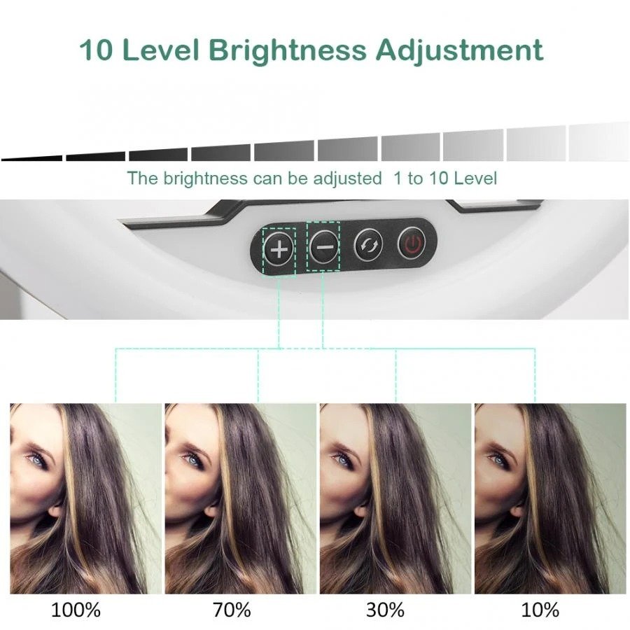 Ring Lights Iluminador de LED 8 polegadas, é indicado para profissionais no ramo da beleza, como maquiadores e cabeleireiros, Blogueiras, ou para fotógrafos que buscam ampliar a iluminação de seus estúdios fotográficos, sendo muito utilizado para criação de fotos de products, devido a sua iluminação fiel às cores e imagens, garantindo suavidade e realce nos elementos a serem fotografados.Possui ajuste de intensidade de cor no próprio iluminador variando entre branco frio, branco neutro e branco quente.A alimentação do iluminador é através de cabo USB (não acompanha adaptador de tomada e não possui bateria interna recarregável), você pode utilizar um adaptador de tomada de celular para ligar ou conectar no USB do computador ou outro equipamento que forneça 5v USB. O cabo USB deverá estar sempre ligado para funcionar.